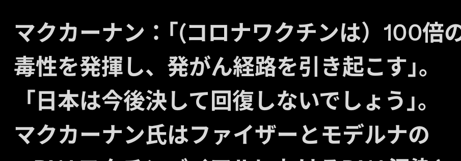 コロナワクチンの闇 政治関連 2025.11.05 言うまでもないが、コロナワクチンの毒。はじまったときから、良心のある博士、医師たちは伝えてくれていた。それを陰謀論だ!反ワクのやつら!と言ってきた国会議員とメディアとコメンテーターたち そいつらの罪はいつ裁かれるのか楽しみにしてる 日本名指しだよ・・・。ーーーマクカーナン:「(コロナワクチンは)100倍の毒性を発揮し、発がん経路を引き起こす」。 「日本は今後決して回復しないでしょう」。 マクカーナン氏はファイザーとモデルナのmRNAワクチンバイアルにおけるDNA汚染とSV40配列を暴露する新しい査読済み論文の共著者。 https://t.co/wSX02BgIEQ— ASKA (@ASKA_Pop_ASKA) November 4, 2025