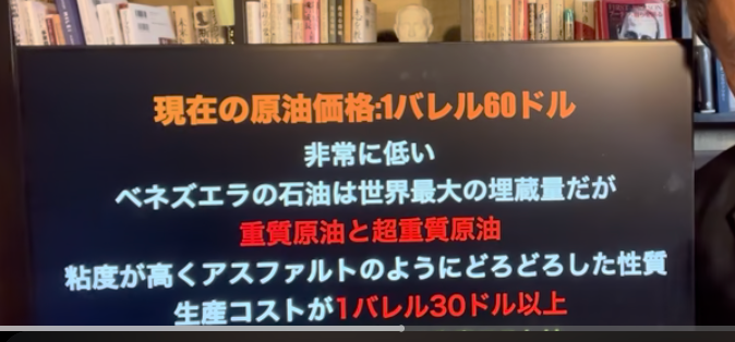 ベネズエラ石油産出は数% 政治関連 2026.01.07 アメリカはトランプ大統領になってから石油は自国で用意できている。ベネズエラの重油を使える石油に変えるには1兆円以上かけて資金投入し利益出せるのは5年後以降という現実は調べればXにも情報出てるが、トランプは石油狙いで戦争始めたなどと愚かな浅はかなことを言うユーチューバーが多い。